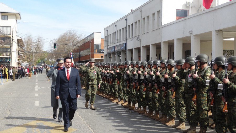 Con un destacamento de Honor del Ejército y Armada y a los sones de la Banda Instrumental de la Escuela de Artillería de Linares, el Gobernador de la Provincia de Cauquenes recibió los honores de rigor, acompañado del Comandante de la Guarnición Militar de Cauquenes y Linares, Coronel José Marzal y el Comandante de la Unidad de Formación, Mayor de Ejército, Fernando Muñoz.